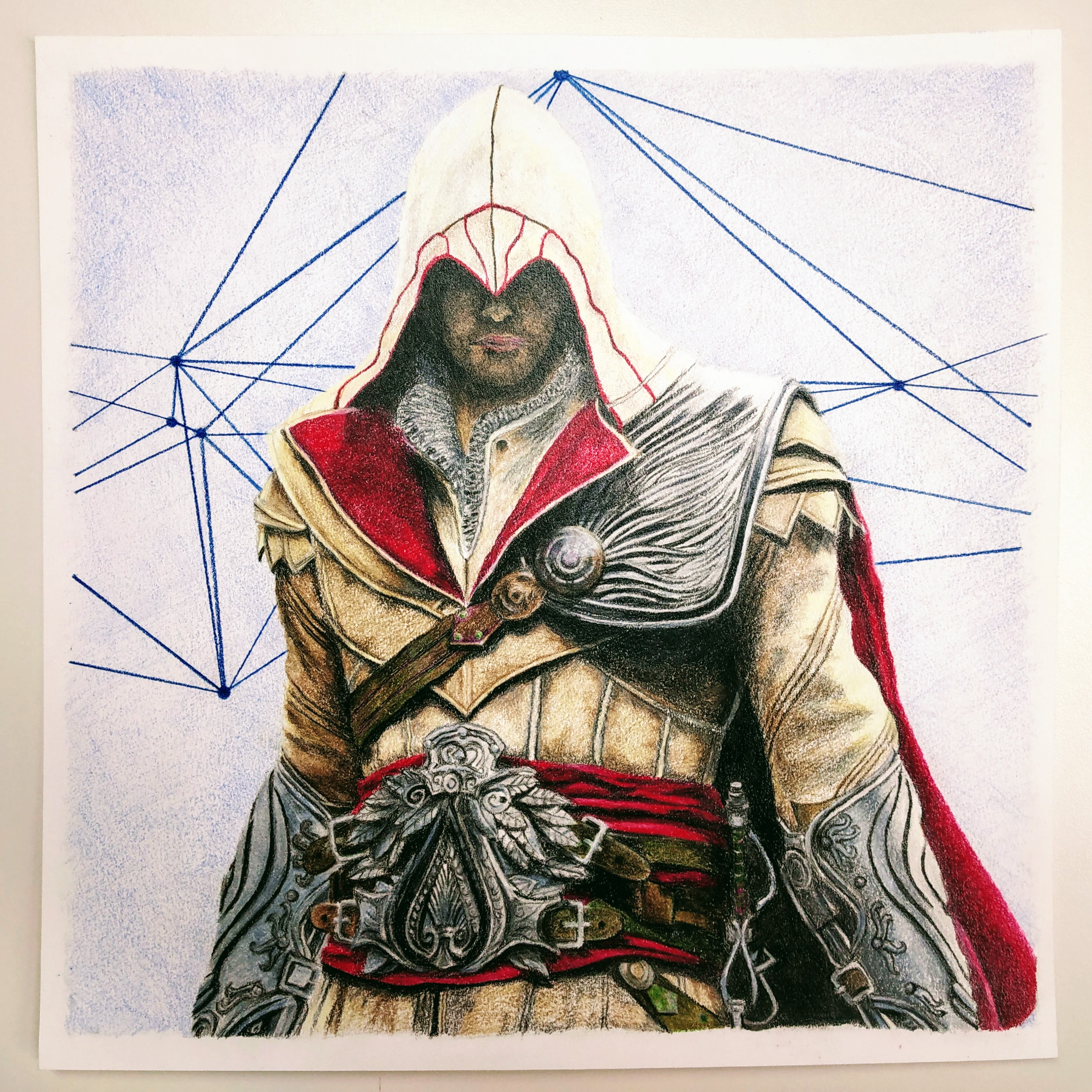 Ezio is arguably the most popular character in the entire Assassin’s Creed series. Starting his life as a spoilt Italian youth, he dedicated his life to the Brotherhood and achieved greatness. I decided to pay homage to this legendary assassin by drawing this picture.